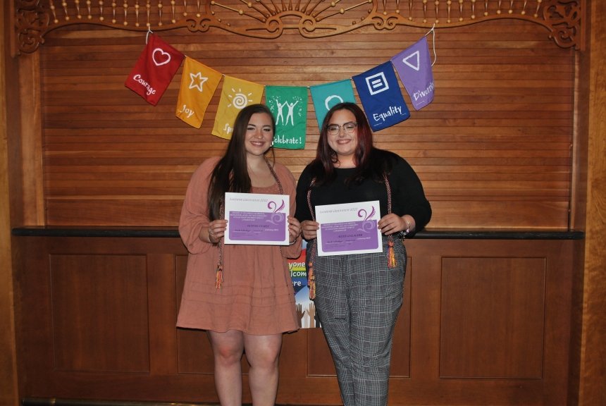 Dr. Lisette Schillig, commission member, presented the graduating seniors with a certificate, rainbow tassel cords, and a graduation gift.