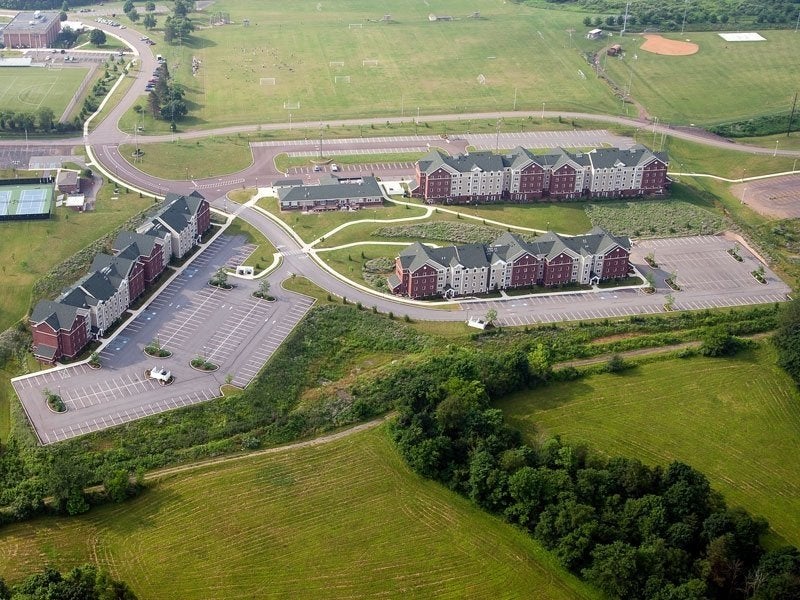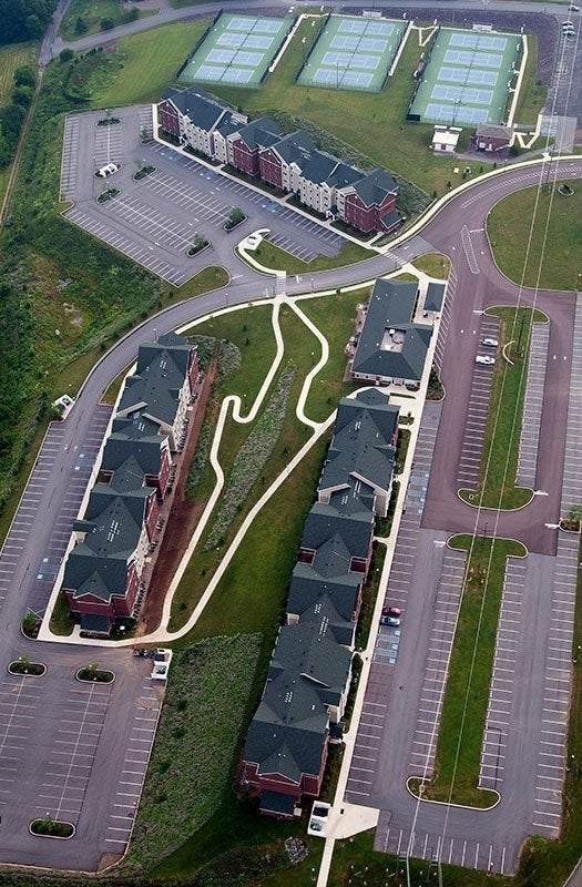 The Jessica S. Kozloff Apartment Complex (JKA), opened in August of 2009 with a project cost of $34 million dollars, consists of three four-story apartment buildings on the upper campus of Bloomsburg University. The 540 bed facility features fully furnished, four-person, single-bedroom, air conditioned apartments with two bathrooms and a kitchen. Laundry facilities are also conveniently located on each floor of the complex. A community building for apartment residents holds a lounge with a fireplace, mailboxes, two conference rooms, staff offices and a small fitness center. Parking is plentiful at JKA and the university shuttle service provides transportation for students to commute between upper and lower campus.